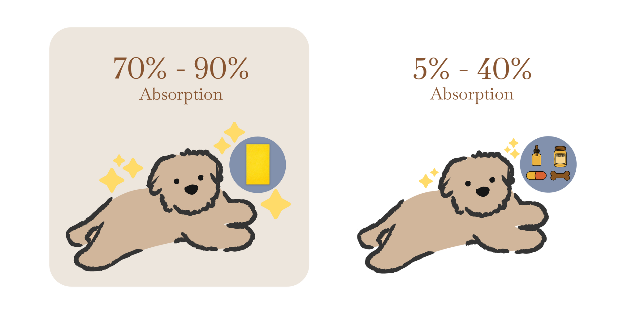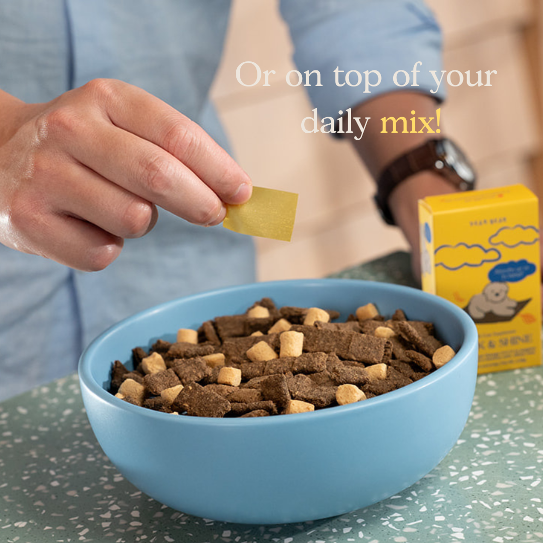 Feed directly in your dog’s mouth or place it on their tongue. You can also add it to their food as a mess-free meal topper. The fast-dissolving oral strip melts in seconds, making daily supplementation easy even for picky or sensitive dogs. No pills. No powders. No chews. Just a stress-free wellness routine your dog will actually enjoy.