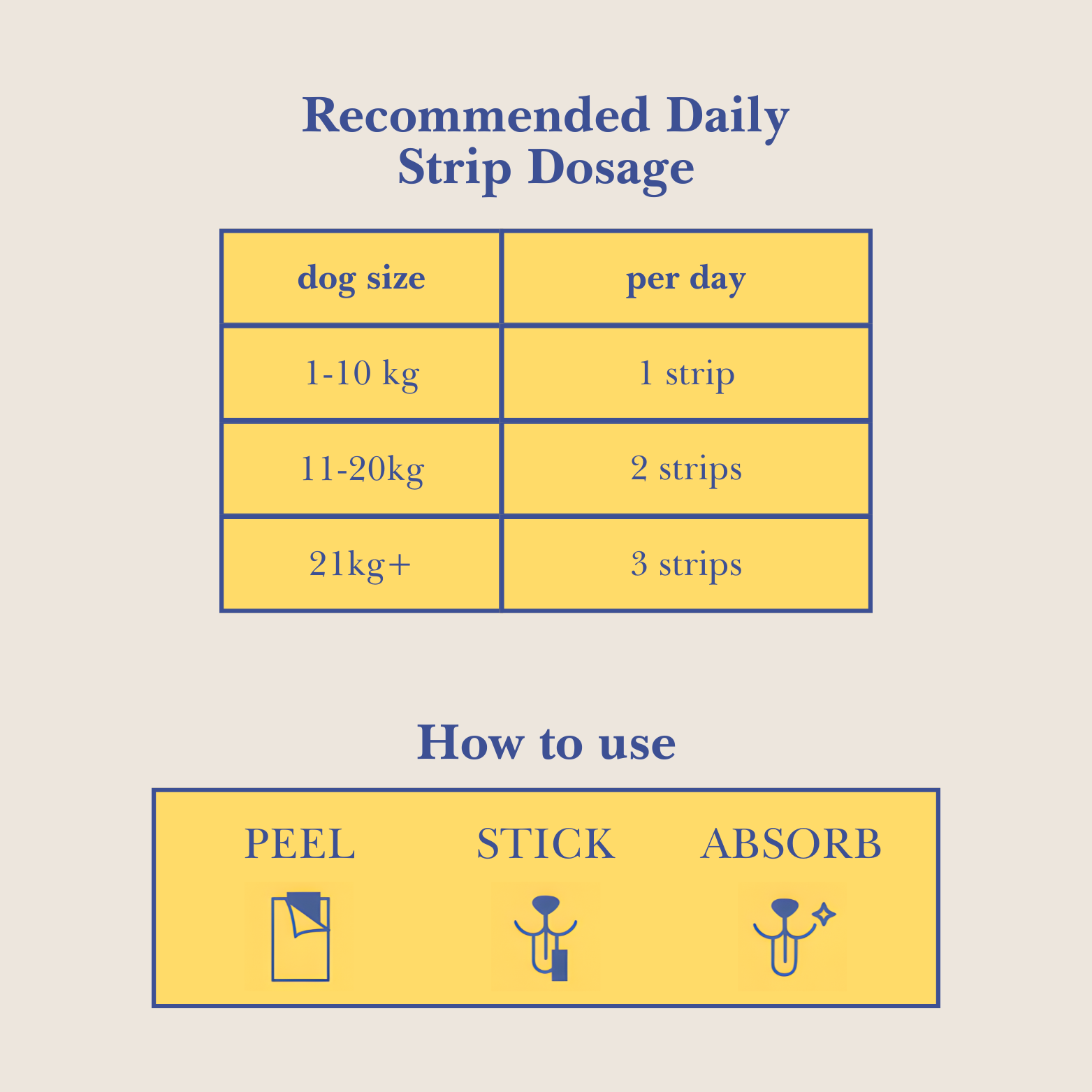 Large (21kg+): 3 strips/ day